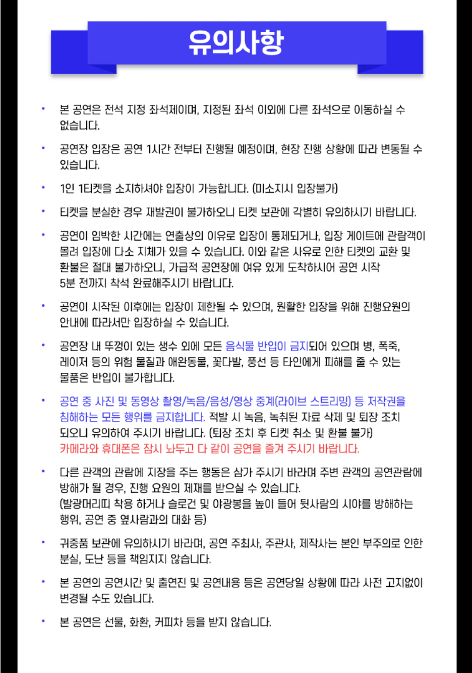 모든 공연은 빠른 매진이 예상되므로 사전 예매 추천!