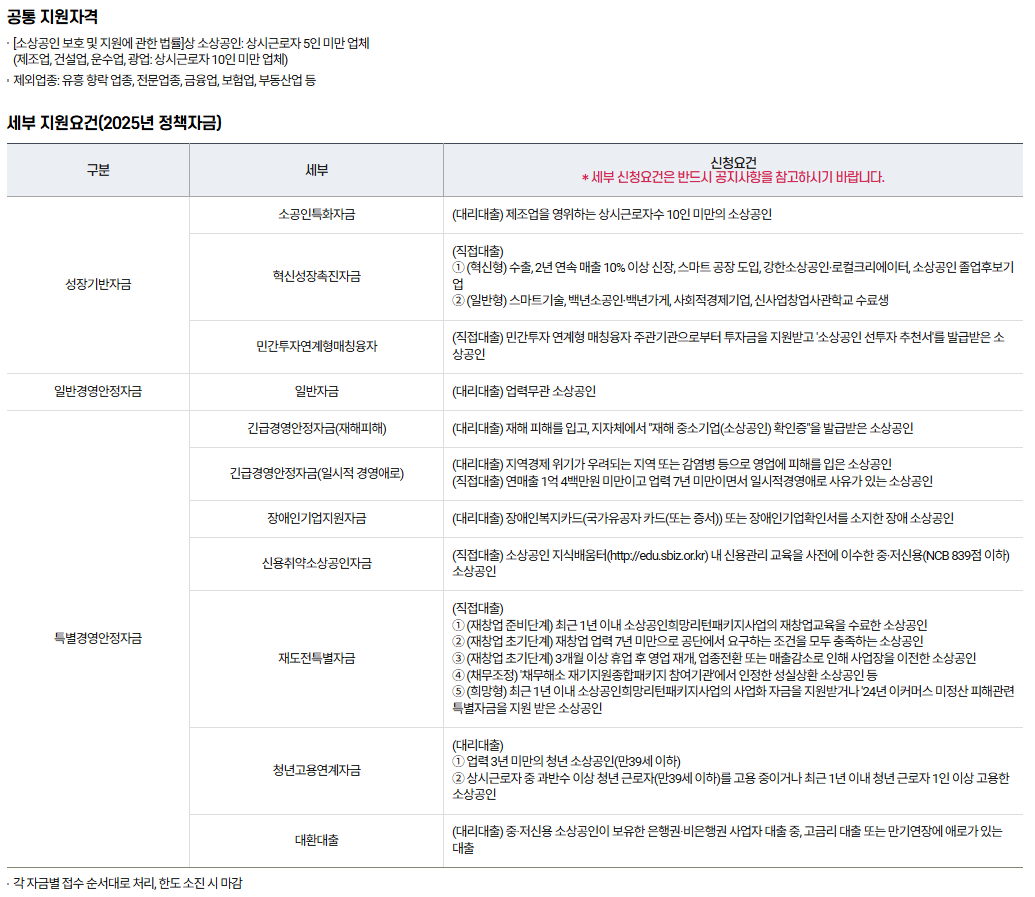 - 신청 사이트: 소상공인 정책자금 사이트